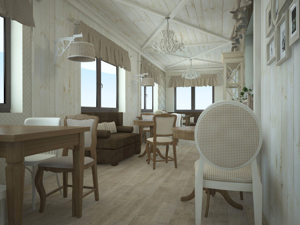 This project presents the interior concept for a small bakery designed in a Neo-Provence style. The main goal was to create an atmosphere of warmth and rustic elegance while keeping implementation costs as low as possible. To achieve this, the design incorporates carefully selected vintage furniture and decorative elements sourced from thrift shops. These authentic character and charm to the space but also support a sustainable and budget-friendly approach. The result is a cozy, inviting bakery interior that blends modern functionality with the timeless aesthetics of Provence.